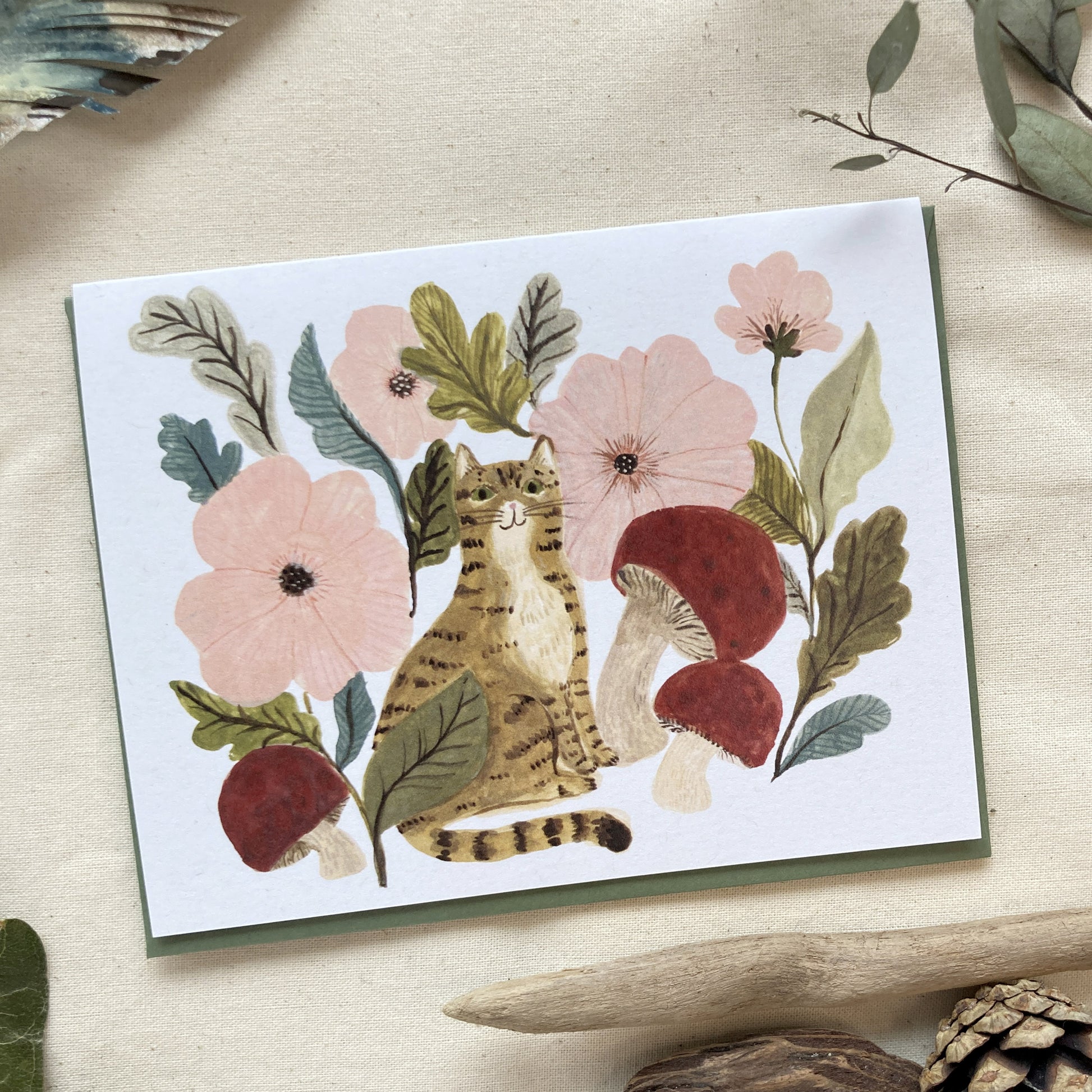 Cat and Mushrooms Greeting Card