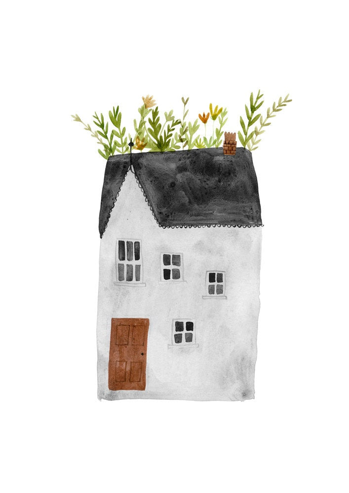 My dream home - a two storey cottage with a pointy roof and lots of plants.